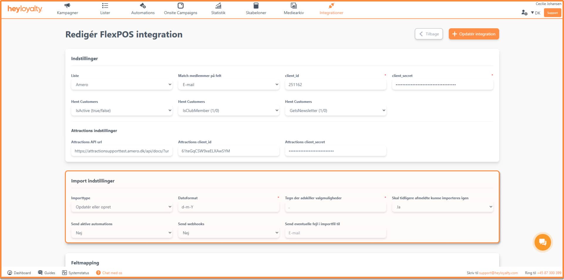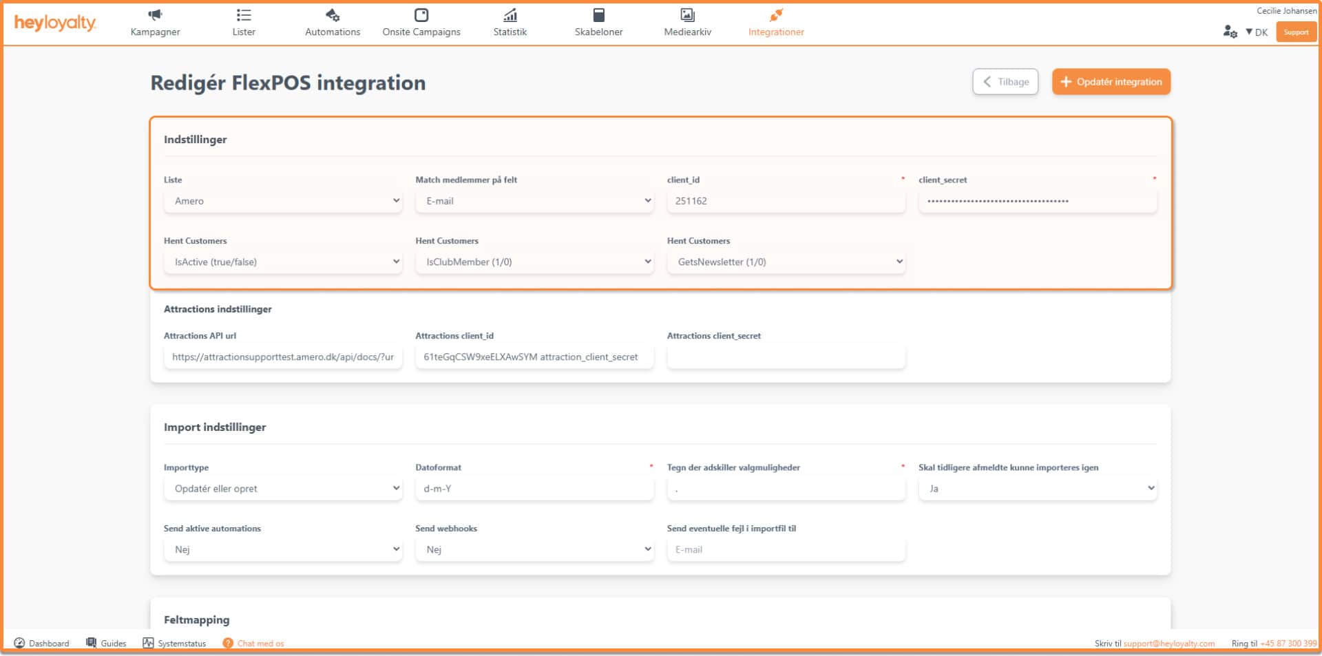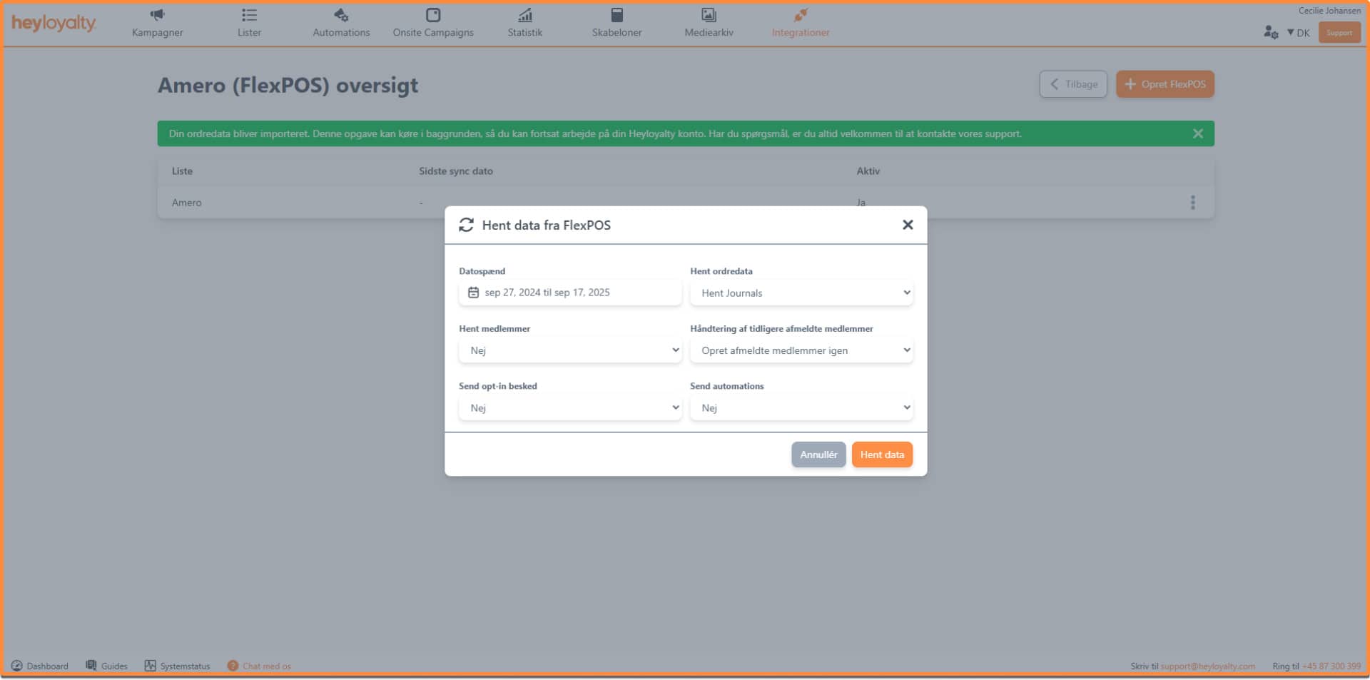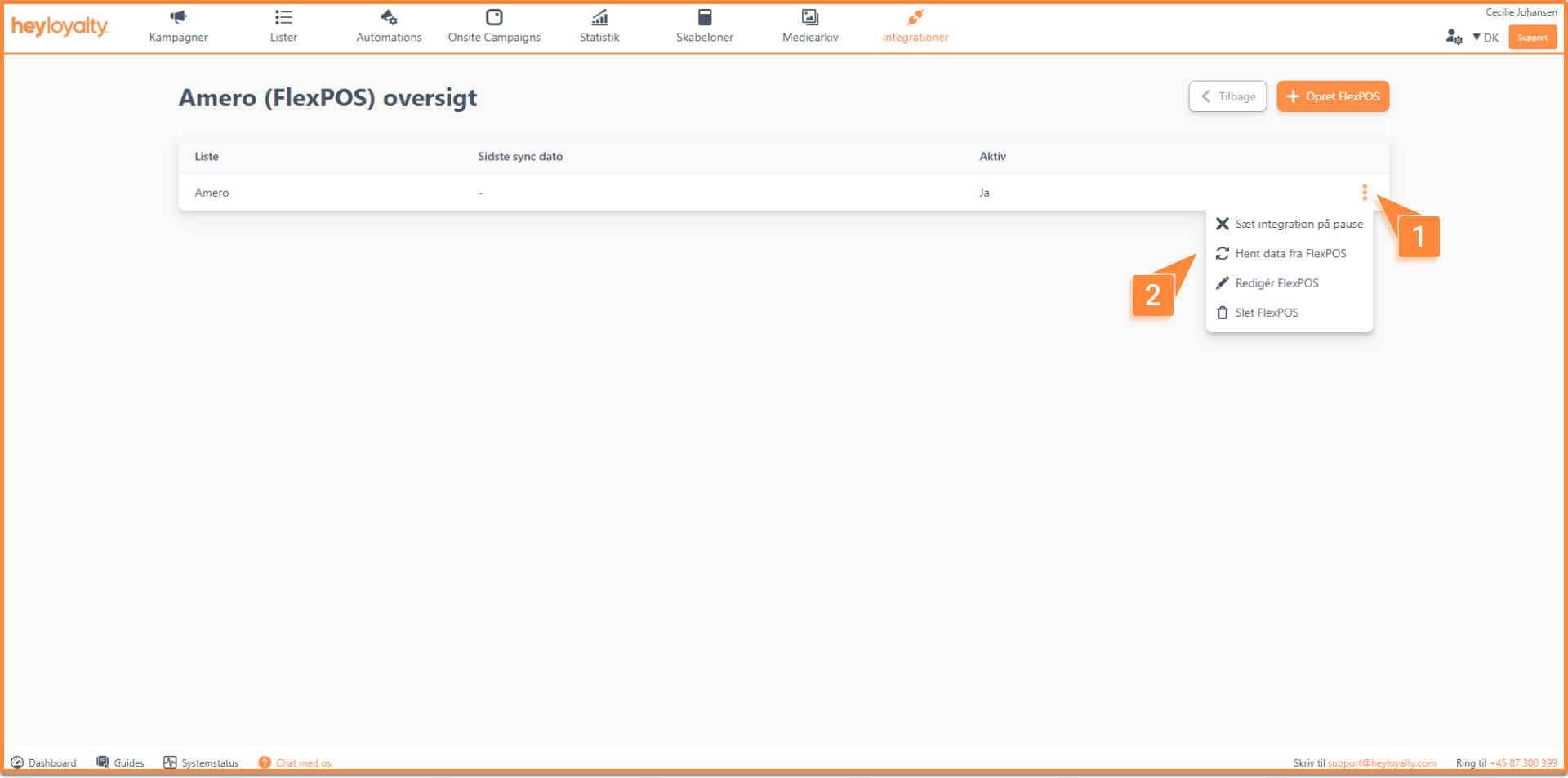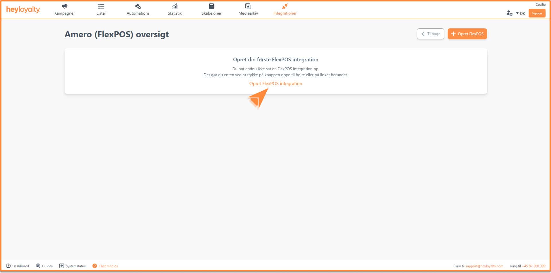 Hvis du ønsker Amero/FlexPOS integrationen, skal du kontakte Heyloyalty på support@heyloyalty.com, da det er en betalingsintegration.