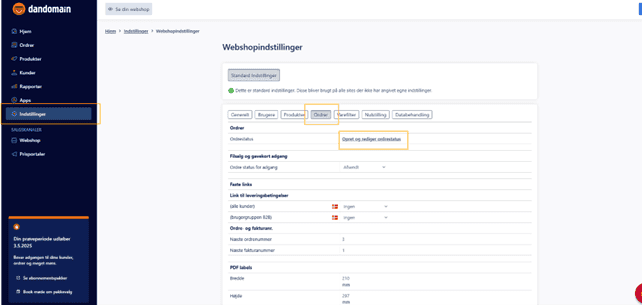Hvis du ønsker at importere eksisterende ordrer (hvilket vi stærkt anbefaler), skal du følge resten af denne guide. Du skal først opsætte ordrestatus. Du finder informationen under ”Indstillinger”, ”Webshopindstillinger”, ”Ordrer”. Hvis du benytter DanDomains standard, kan du kopiere følgende, ind i Heyloyalty. 1. ID for ordrestatus: køb (1,2,3,4,6,7,8). 2. ID for ordrestatus: annulleret (5). Hvis du har ændret på standardindstillingerne for disse, skal du notere de korrekte ID’er for følgende ordrestatus: Ordrestatus for Køb: Ordre modtaget, Under behandling, Delvist afsendt, Afsendt, Klar til afhentning, Afhentet, Genåbnet. Ordrestatus for annulleret: Annulleret.
