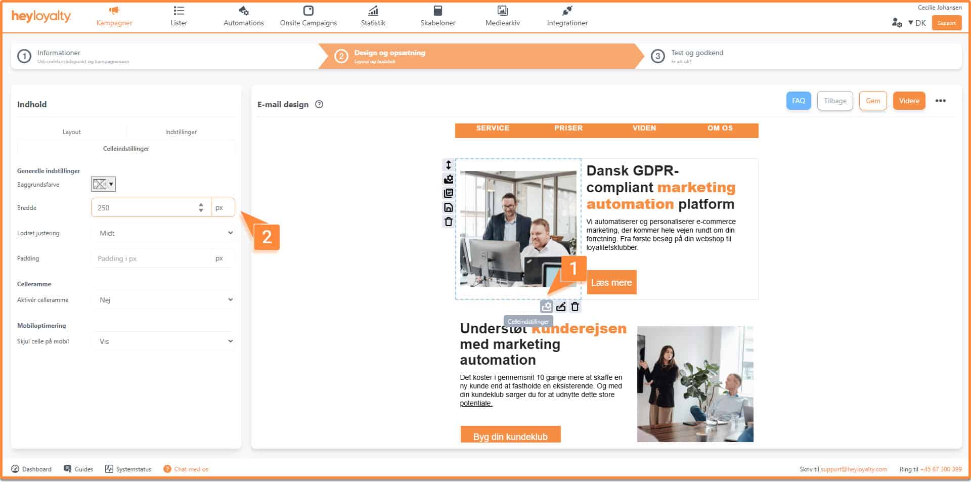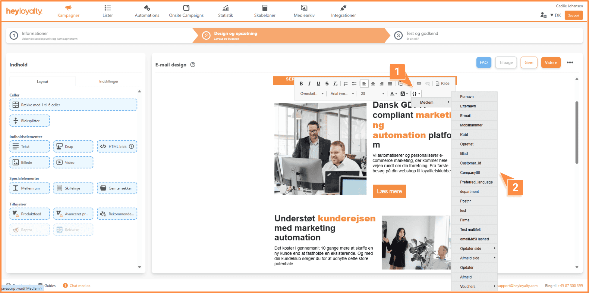 Som nævnt fungerer opsætningen af mails i step 2 på præcis samme måde i automationsflow. Du kan læse mere om, hvordan du opretter et automationsflow her.