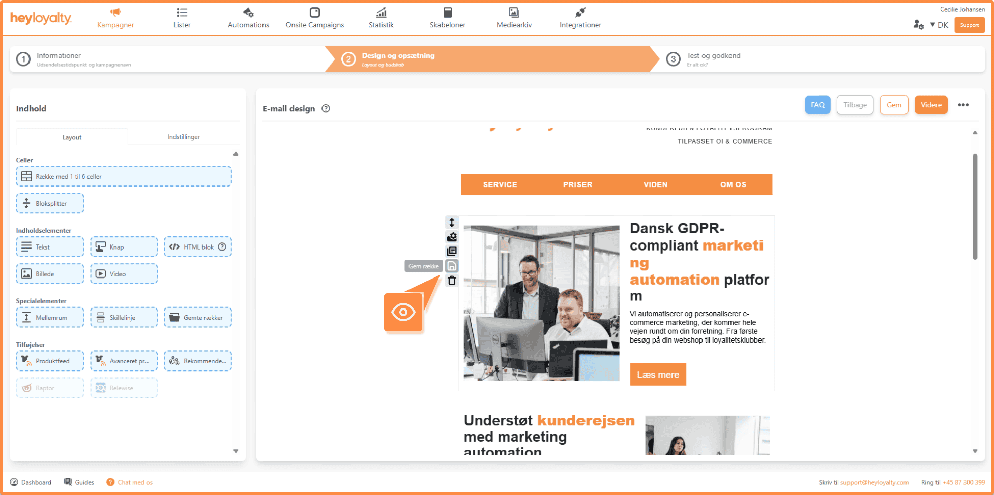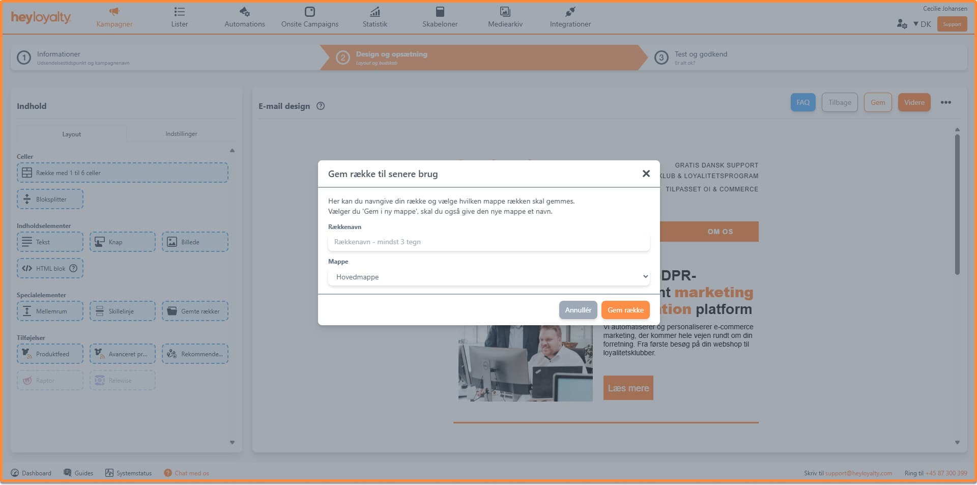 Med Gemte rækker kan du gemme elementer i designeren og genbruge dem i andre kampagner eller automationsflows.