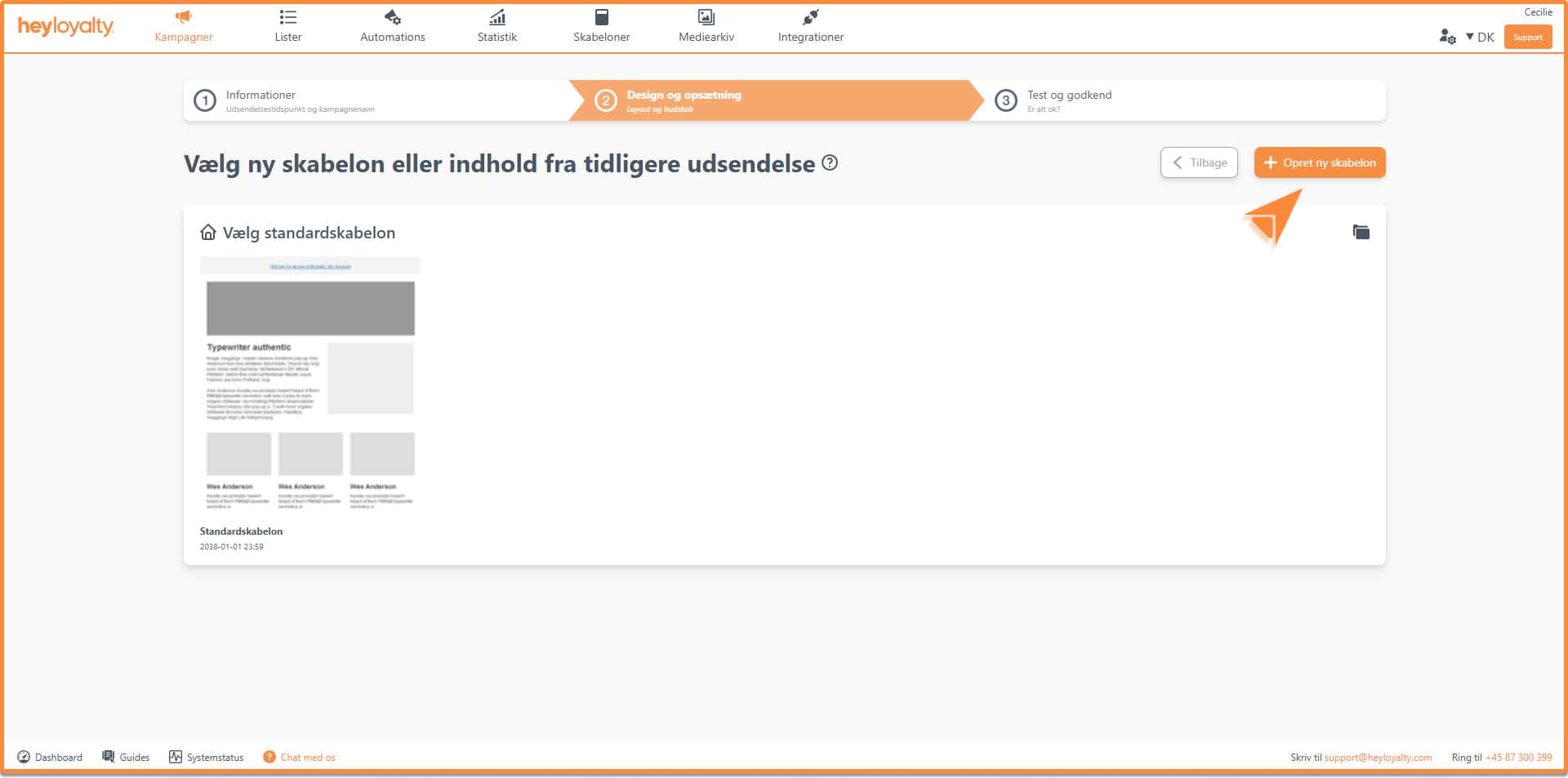 Når du bygger en ny kampagne eller automationsflow, vil du kunne finde din standard skabelon her: