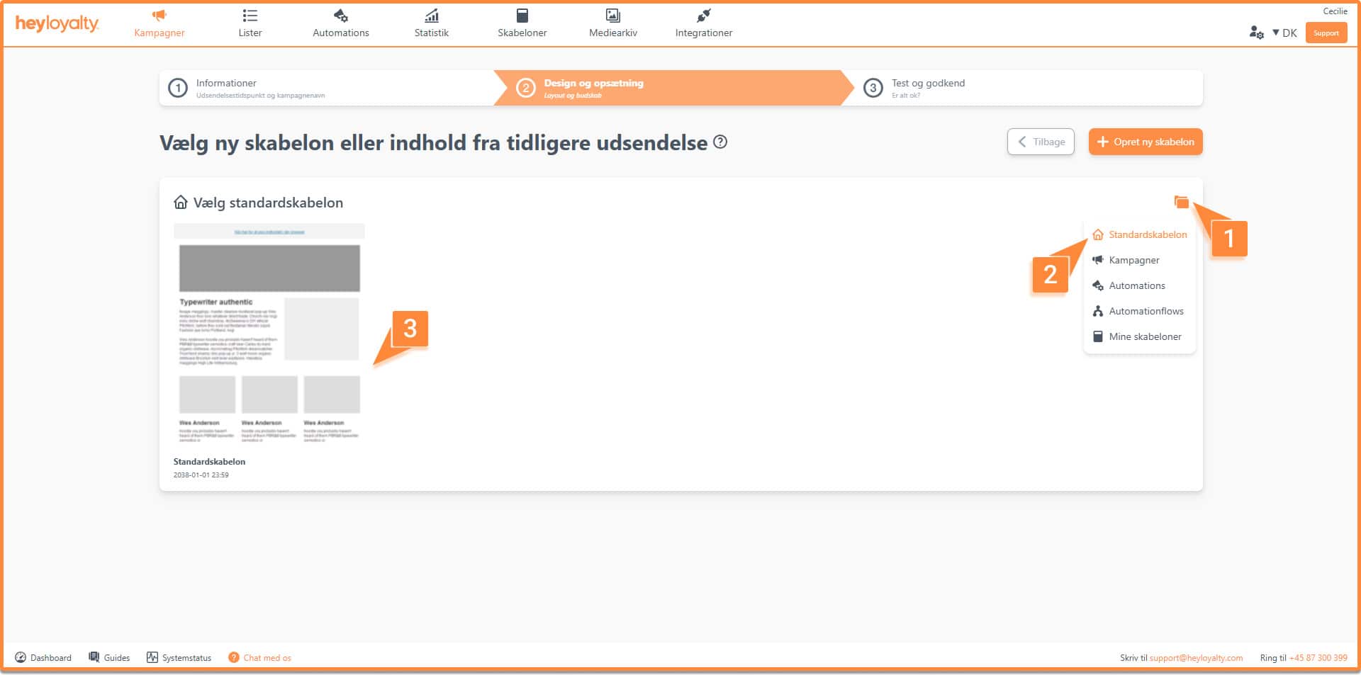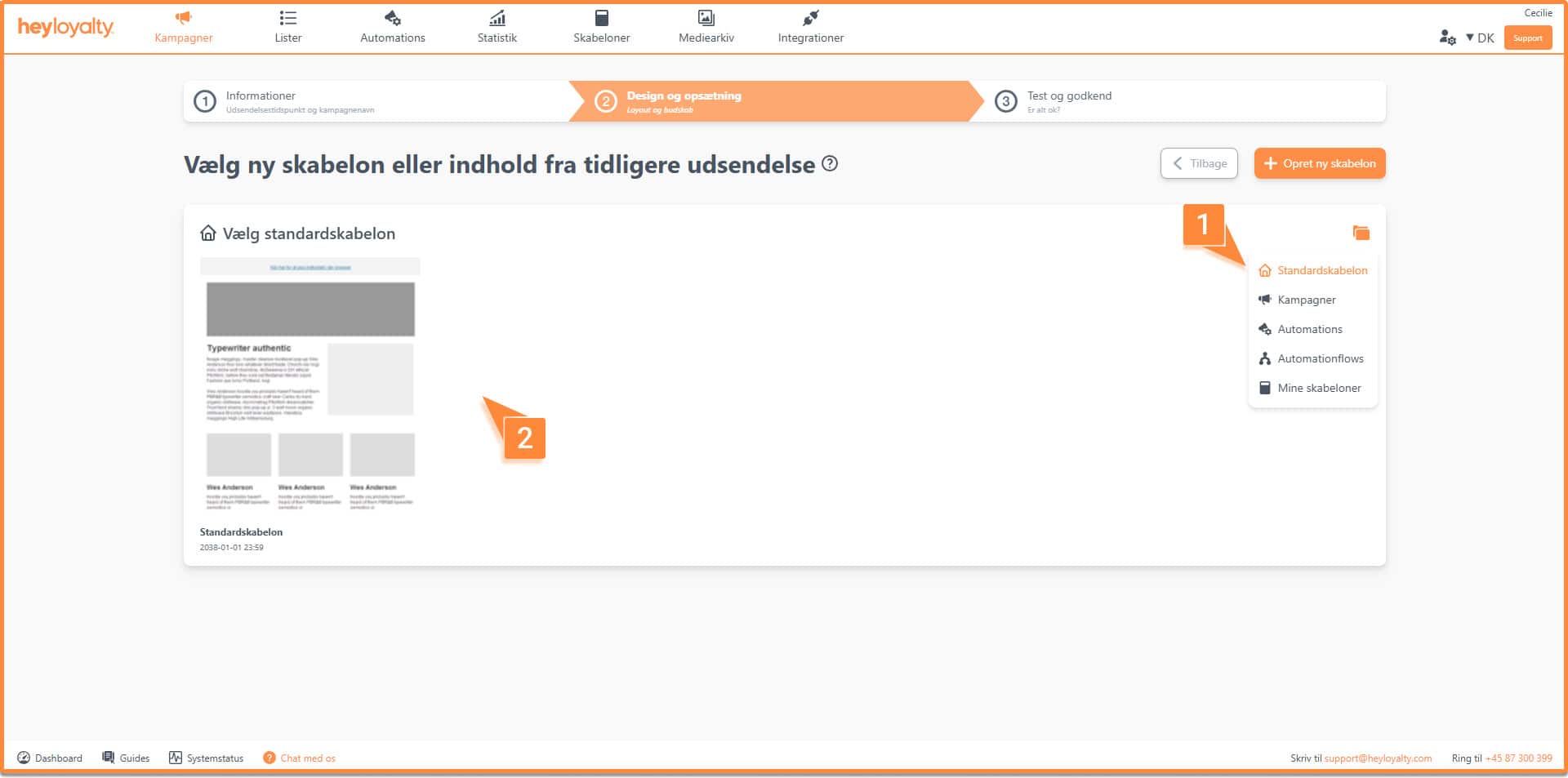 Når du skal opsætte en kampagne eller automationsflow, skal du først vælge en skabelon.